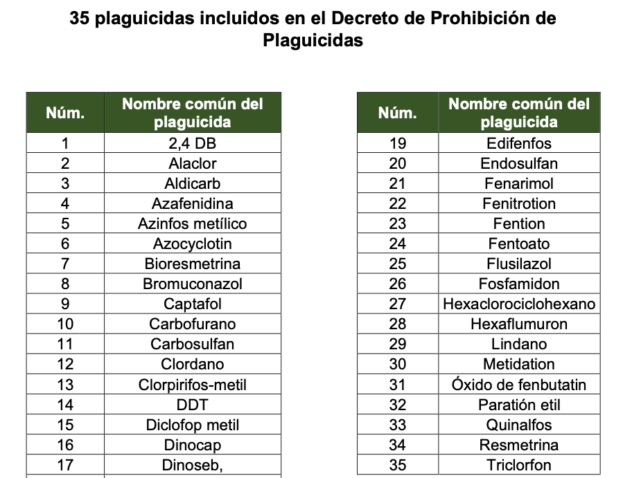 Como parte de una estrategia nacional integral, el gobierno de México anunció la prohibición de 35 plaguicidas, desde su producción o importación hasta su aplicación en campo, al considerar, con evidencia científica, que son “sustancias altamente peligrosas para la salud y la biodiversidad, los recursos naturales y la calidad de los ecosistemas”.
