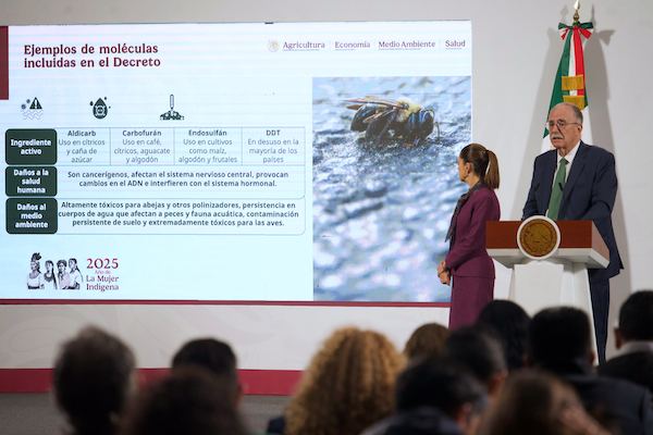 Como parte de una estrategia nacional integral, el gobierno de México anunció la prohibición de 35 plaguicidas, desde su producción o importación hasta su aplicación en campo, al considerar, con evidencia científica, que son “sustancias altamente peligrosas para la salud y la biodiversidad, los recursos naturales y la calidad de los ecosistemas”. Durante la conferencia de la presidenta de México,…