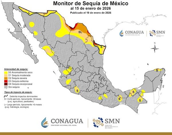En México solo 7.4% de la superficie del país registra sequía de moderada a excepcional, por lo que 2 mil 168 municipios -de un total de 2 mil 478-, localizados en 13 entidades, se encuentran libres de esta condición climatológica, informó el Servicio Meteorológico Nacional (SMN) de la Comisión Nacional del Agua (Conagua). Con base en el más reciente reporte…